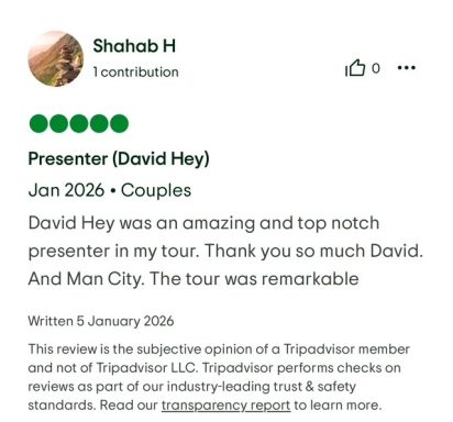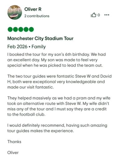 I'm also proud to represent Manchester City Football Club as a Tour Guide at the Etihad Stadium