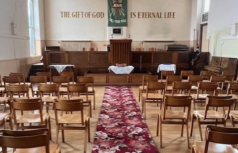 Always a pleasure to be invited to speak at Hollinwood Bible Mission in Oldham. A place with a wonderful history and a very warm welcome. This photo was taken before people arrived, honest!!